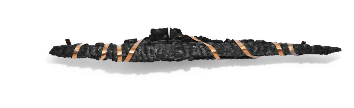 charred wood from Mackintosh Library, steel and copper