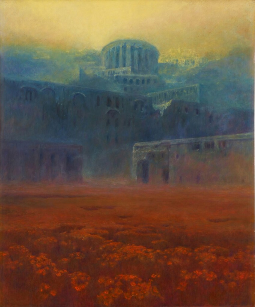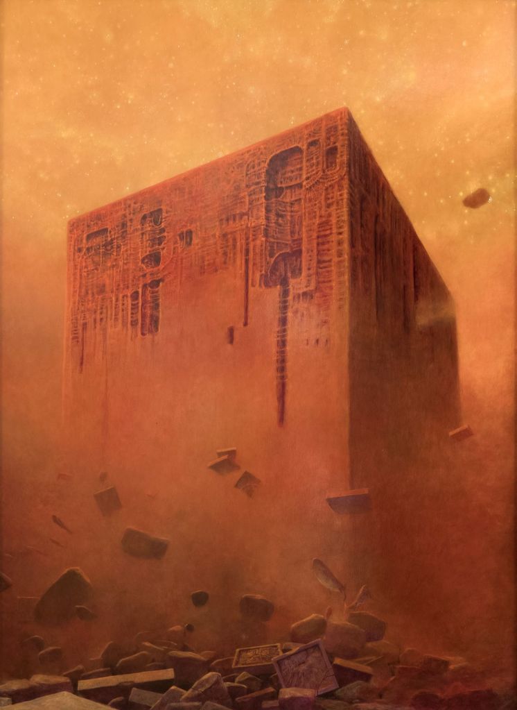 Lot 17. Zdzisław Beksiński, Polish 1929-2005. AR, signed BEKSIŃSKI and inscribed AR on reverse, oil on board. Unframed: 87 by 73cm., 34¼ by 28¾in. Framed: 97 by 83cm, 38¼ by 32¾in. Property from an American Private Collection. Estimate 60,000 – 80,000 euro. Sotheby’s. 11/29/22. Not sold