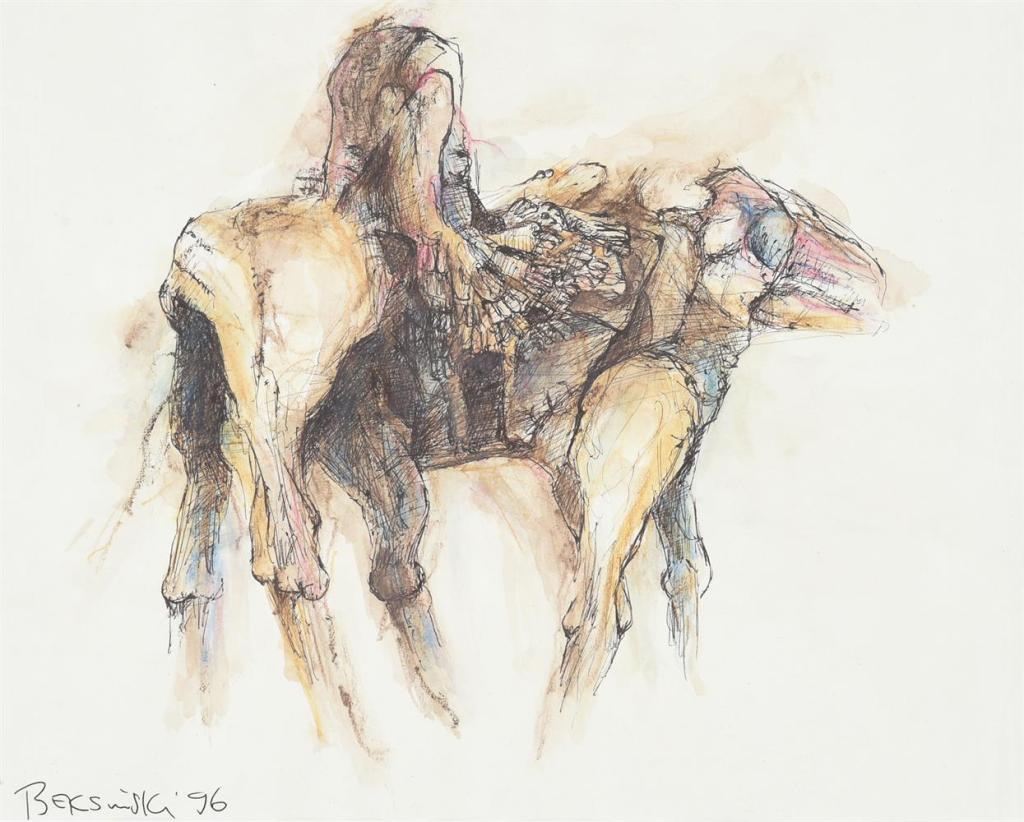 Lot 8. ZDZISLAW BEKSINKI (POLISH 1929-2005). DESSIN. Pen, ink and watercolour. Signed and dated ’96 (lower left), 23.5 x 29cm (9¼ x 11¼ in.). Provenance: Galerie Simone van Dormael, Brussels. Estimate 6,000 – 8,000 GBP. Dreweatts 1759. 07/11/23