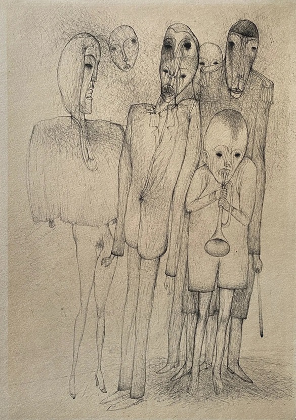 Lot 117. ZDZISLAW BEKSINSKI (POLAND/ 1929-2005). Group of figures, 1967. Ink on heavy paper Signed and dated ‘BEKSIŃSKI 67’ (on reverse) 32.6 x 23.1 cm. We thank Mr. Piotr Dmochowski for confirming the authenticity of this work. Estimate 1,000 – 1,500 euro. Varenne Encheres. 09/20/24. Sold 7,200 euro