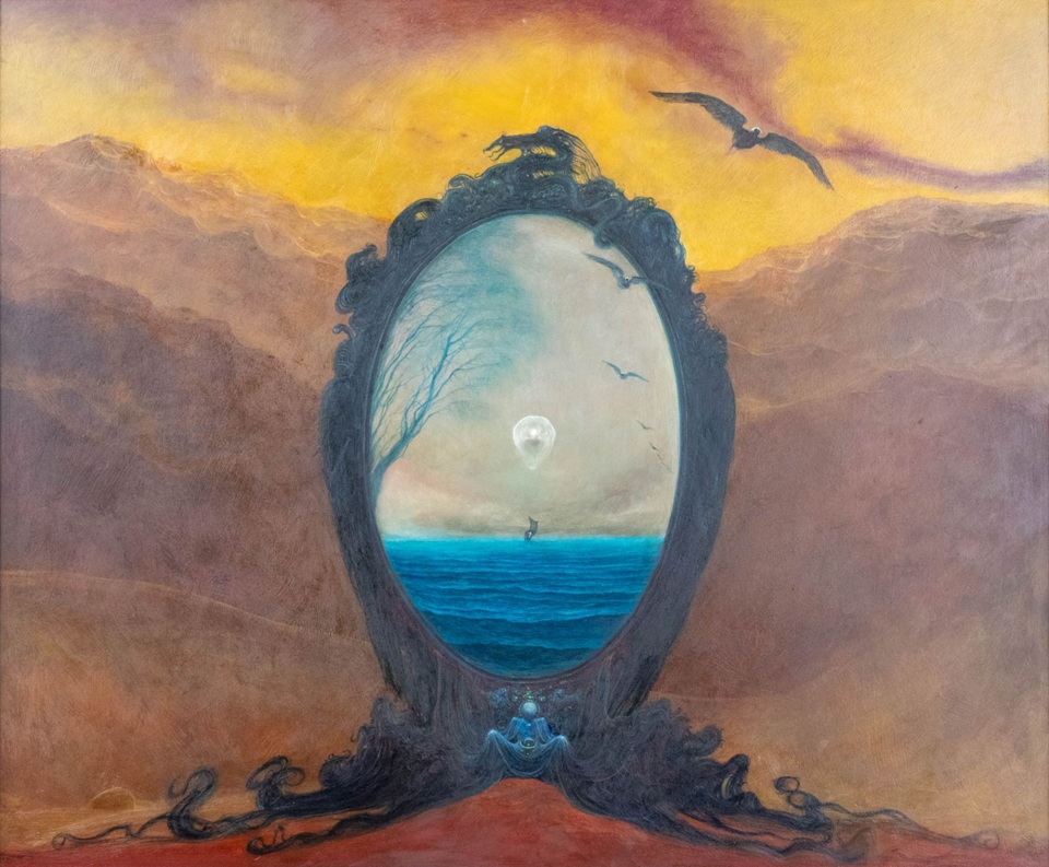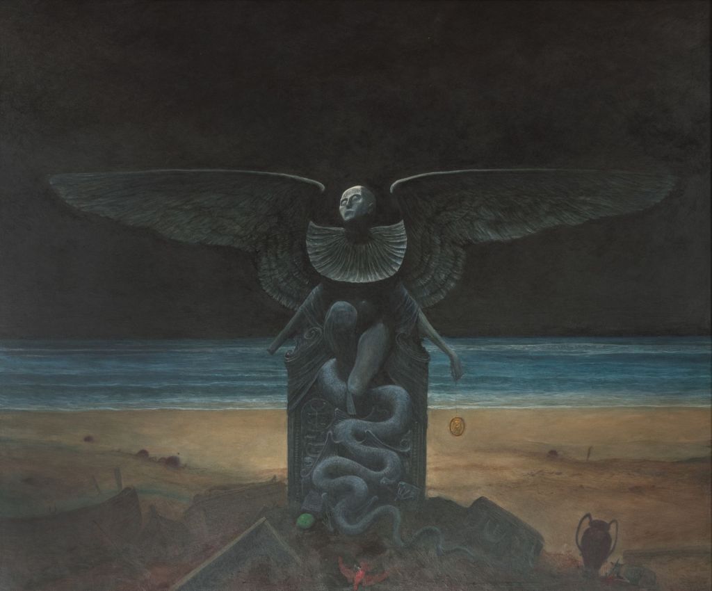 Lot 15. Zdzisław Beksiński, Polish 1929-2005. RZ, signed BEKSIŃSKI and inscribed RZ on the reverse, oil on board. Unframed: 86 by 71.5cm., 34 by 28¼in. Framed: 104 by 89.5cm., 41 by 35¼in. Property from an American Private Collection. Estimate 60,000 – 80,000 euro. Sotheby’s. 11/29/22. Sold 75,600 euro.