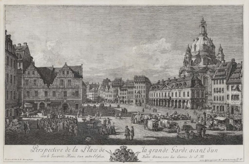 Bernardo Bellotto (Canaletto). Perspective de la Place de la grande Garde …”. Der Neumarkt in Dresden von der Moritzstraße aus