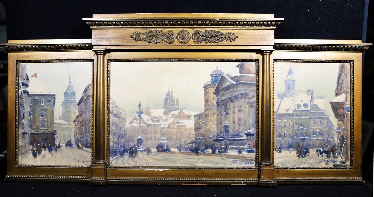 Przyzwoity malarz, przyzwoite akwarele międzywojennej Warszawy i każdy warszawiak pozna te zniszczone przez Niemców zabytki. Znakomita jest rama do tego tryptyku lecz kolekcjoner powinien się liczyć, że zapłaci za tarnsport ~3 x podanej ceny estymacyjnej tych akwarel.