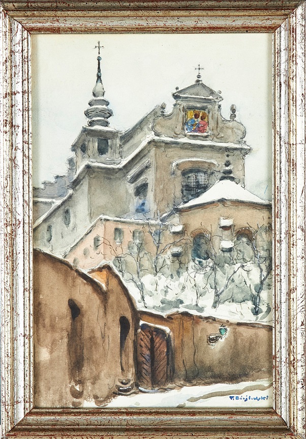2703440. TADEUSZ CIESLEWSKI (1870-1956). Motif with church in Warsaw, signed T. Cieślewski, watercolor and pencil on pape, 26×16 cmr. Estimate 136 euro. Stockholms Auktionvers. 03/04/23