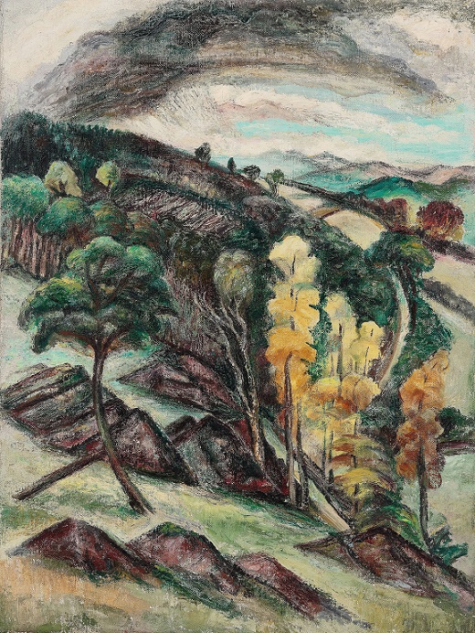 Lot 32. Zdzislaw CYANKIEWICZ DIT CYAN (Czechowice 1912 – Paris 1981). Hilly landscape. Oil on canvas, 64 x 48 cm. On the back, a seaside painted by the artist. Estimate 600 – 800 euro. Millon. 05/13/20