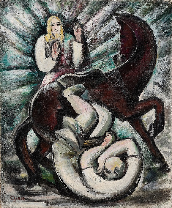 Lot 35. Zdzislaw CYANKIEWICZ DIT CYAN (Czechowice 1912 – Paris 1981). The Apparition of Christ. Oil on canvas, 46 x 38 cm. Signed lower left “Cyan”. Estimate 600 – 800 euro. Millon. 05/13/20
