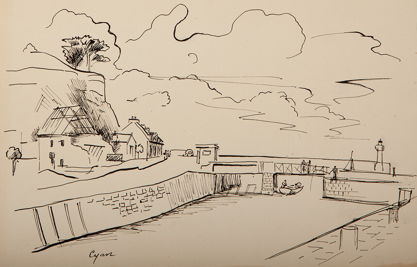 Lot 35188171. ZLADISLAW CYANKIEWICZ (Bialystok, Poland 1912 – Paris, France 1981) “Puerto“. Tinta sobre papel. Firmado en el ángulo inferior izquierdo. Medidas: 23 x 35 cm. Estimate 100 – 150 euro. Setdart. 04/13/21.