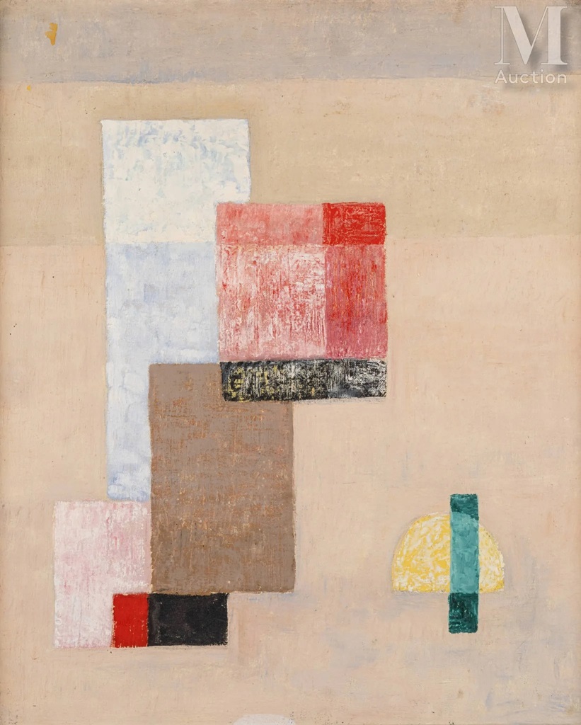 Lot 39. CYAN (Zdzislaw Cyankiewicz dit) (Czechowice 1912 – 1981 Paris). Composition constructiviste II. Huile sur toile, non signée. 61 x 46 cm. Provenance : Atelier de l’artiste. Estimate 800 – 1,000 euro. Oger-Blanchet. 05/18/21