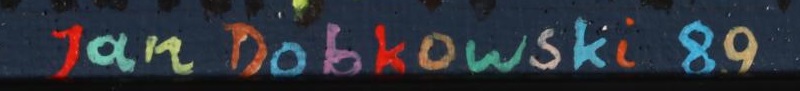 Bardzo dużo prac Jana Dobkowskiego jest sprzedawanych w Polsce na aukcjach. Do wyboru są z różnych lat (okresów?) jego twórczości a na ceny można patrzeć pod kątem zasobności portfela i chciejstwa. Nie potrafie powiedzieć, która praca jest dobra a która tylko taka sobie. Te z aukcji są przynajmniej bardzo kolorowe a nawet litery sygnatury są malowane różnymi kolorami, jak przez dzieci w przedszkolu. Słowem, stoję na uboczu i oczekuję na dobre prace na rynku jesienno-zimowy.