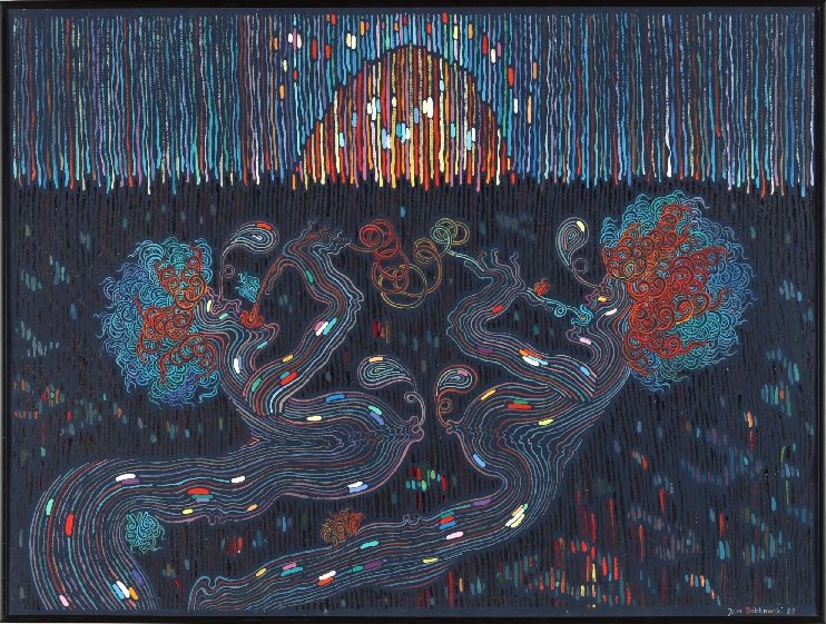 Lot 1222. Jan Dobkowski (Polish, born 1942). Wieczna Melodia (Eternal Melody), oil and acrylic on canvas, signed and dated 1989, inscribed on the verso, framed. SS 23 1/8 x 31 in.; DOA 23 7/8 x 31.75 in. From the Collection of Mr. Friedrich Hessler, Raleigh, North Carolina. Estimate $1,000 – 3,000. Leland Little Auctions. 12/07/19