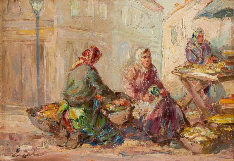 Lot 316. Erb, E. (20. Jh.) “Markt bei Lemberg”, Öl/H., sign. u.r., 17×27 cm, Rahmen. Reserve 500 euro. Auktionshaus Satow. 10/19/19