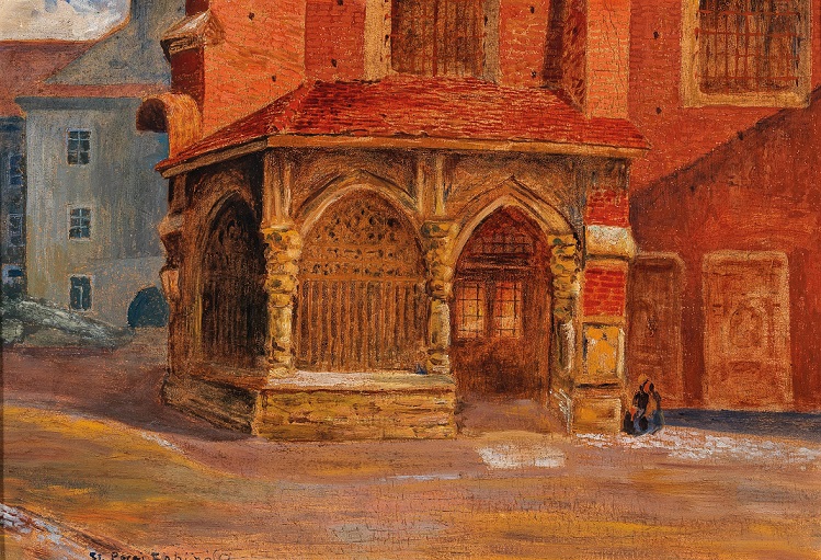 Lot 167. Stanisaw Fabijanski Poraj (Paris 1865-1947 Krakau). Blick auf die St. Barbara Kirche in Krakau, signiert St. Poraj Fabijanski, Öl auf Malkarton, 35 x 49,5 cm. Estimate 600 – 800 euro. Dorotheum. 12/10/20