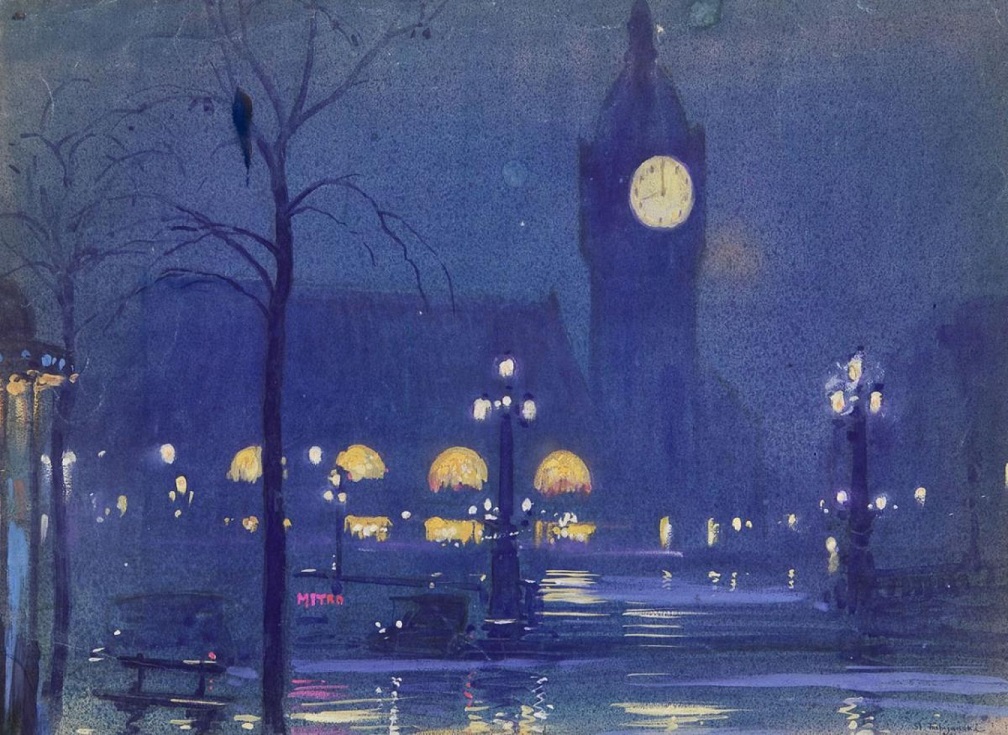 Lot 2748. Attributed to FABIJANSKI, Stanislaw Ignacy (1865 Paris – 1947 Krakow). Night city view. Gouache on paper. Signed. 43,5 x 59,5 cm. Without frame. Two spots on the reverse reinforced, restored, stained. Fabijanski, Polish painter, sculptor, draftsman. Son of Erazm Rudolf. Studied at the art school in Cracow and the academy in Munich. Member of the Artists Section of the Krakow Legionnaires Union. Received various prices * Bergmann partner auction. Opening 20 euro. Wendl. 03/04-06/21. Sold 420 euro