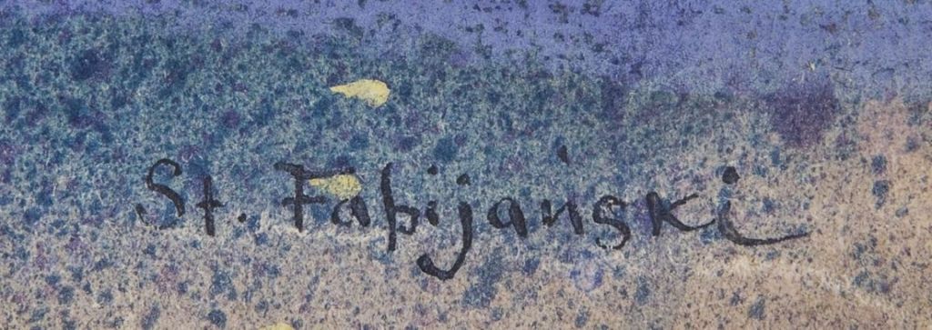 Monachijczyk, który otrząsnął się z ‘monachijskich sosów’ i znany jest obecnie głównie z widoków krakowskich. Ogrójec przy kościele świętej Barbary w Krakowie był wielokrotnie tematem jego prac, w akwareli i w oleju, malowanych o różnych porach roku, choć ujęcie jest to samo. Nie wróżę pracy z Dorotheum dużego powodzenia i chętnie wróciłbym do jego prac monachijskich. Prace Fabijańskiego o tej dokładnie tematyce były wielokrotnie licytowane na aukcjach w Polsce.