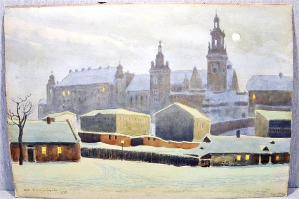 Krakowski dobry malarz, krakowska tematyka akwareli. Praca stanowi obecnie soczysty rodzynek na martwym rynku.