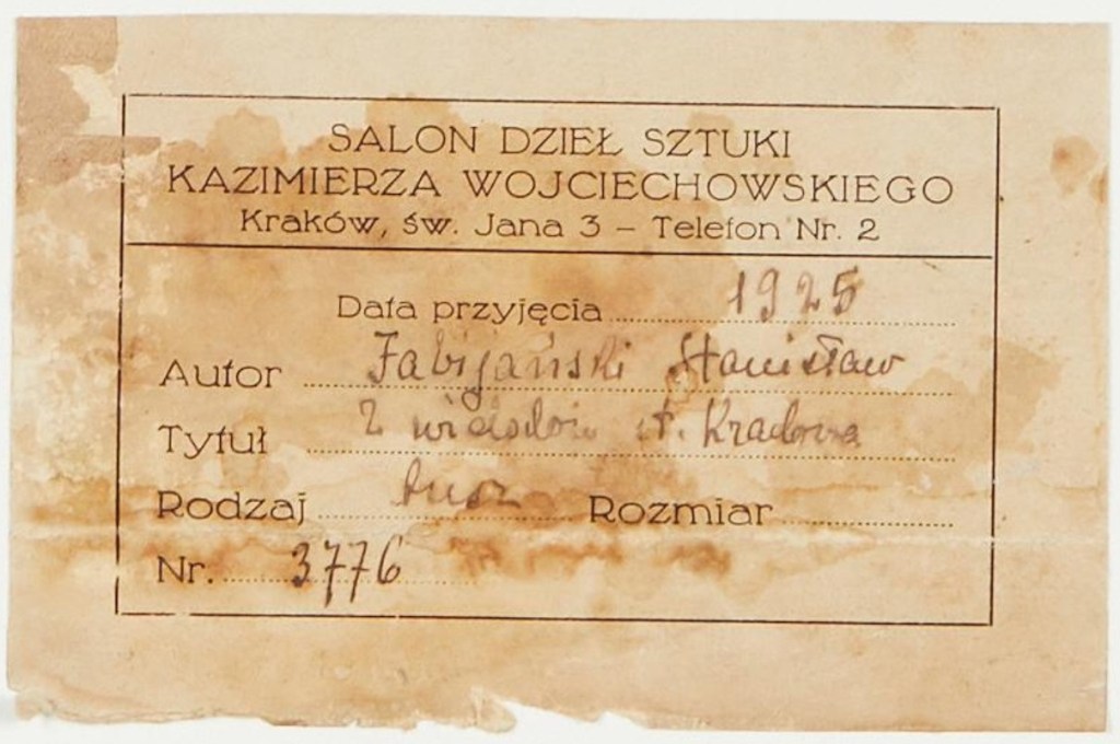 Stary Kraków był wielokrotnie obiektem zainteresowań malarskich Stanisława Fabijańskiego, włączywszy Bramę Floriańską malowaną w różnych porach roku, z różnych miejsc. Obraz z aukcji w Dorotheum to swoista międzywojenna pocztówka z Krakowa. Wycena tej akwareli jest dość niska w Dorotheum a Polsce chyba nie przekroczy 1,500 złotych. Nalepka wystawiennicza z Salonu Wojciechowskiego – pewnie przeniesiona ze starej oprawy – nieco podwyższa wartość tej pracy lecz nie wartość artystyczną.