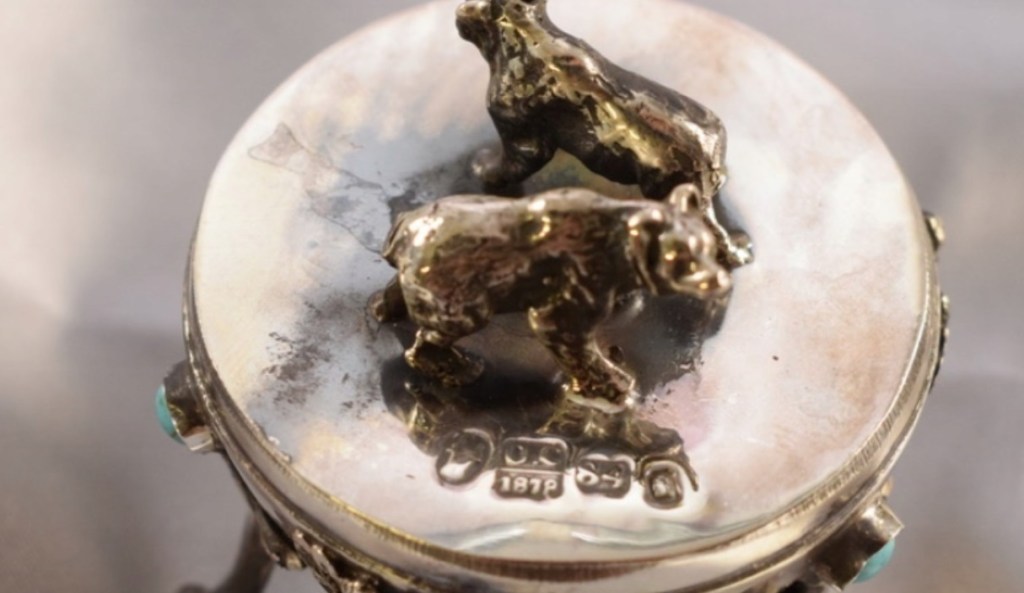 Jeden z obiektów (fałszerwstwo z aukji w UK z dnia 06/12/24) wraz z fotografią punc (hallmarks)