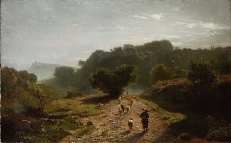 Artur Gąssowski. Pejzaż gorski z owcami. Olej na płótnie, 50 x 80 cm. Własność MNW.
