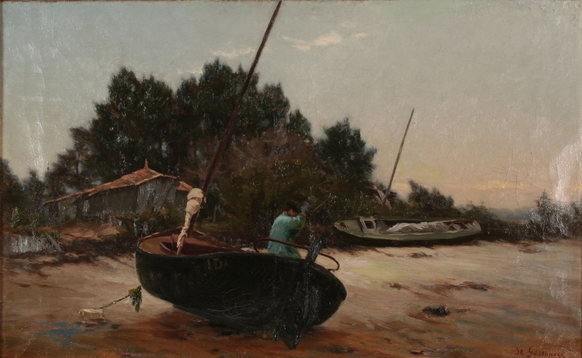 Lot 6. Alexandre de GASSOWSKI (1835 – 1900). At low tide. Oil on canvas 35 x 55 cm Signed lower right “de Gassowski” and dedicated lower left “souvenir to his young friend Fei Bassoret?” Millon. Estimation 600 – 800 euro. 05/31/23. Sold €500.