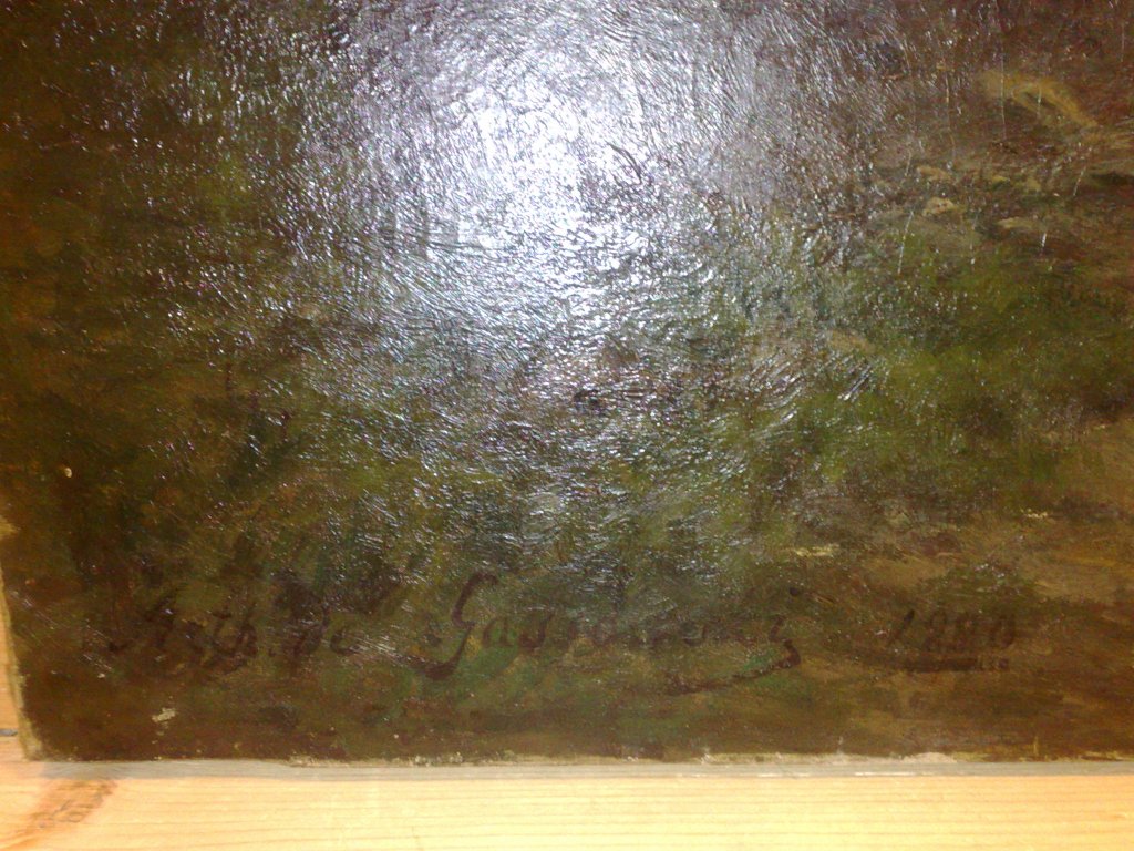 Dom aukcyjny popełnił na 99.9% pomyłkę przypisując tę pracę Aleksandrowi Gąssowskiemu a nie Arturowi Gąssowskiemu, jego kuzynowi. Artur Gąssowski był niezłym pejzażystą. Teraz jest zupełnie nieznany na polskim rynku (mieszkał głównie we Francji). Pod koniec XIX wieku był wzmiankowany niejednokrotnie przez krajową prasę a nawet kurtuazyjnie nazywany przez pewien okres ‘najlepszym polskim pejzażystą’. W Polsce, w zbiorach publicznych znajduje się chyba tylko jedna jego praca, w Muzeum Narodowym w Warszawie (fotografia poniżej).