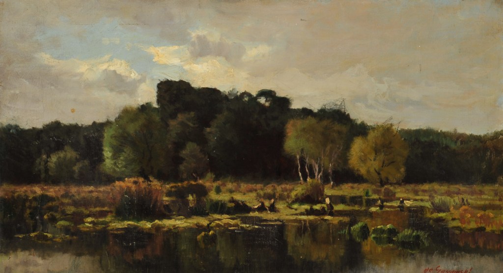 Alexander de GASSOWSKI (1835 – 1900). Rest by a river. Oil on paper mounted on canvas. Signed lower left A Gassowsky, 54 x 46 cm. Gros & Dielettrez. 01/20/21