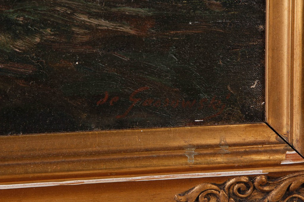 Ten obraz był na aukcji we Francji w 2014 roku z dużo wyższą wyceną. Ja sam mam problem by ocenić, który z Gąssowskich go malował: Artur czy Aleksander? Nazwisko stosunkowo rzadkie.