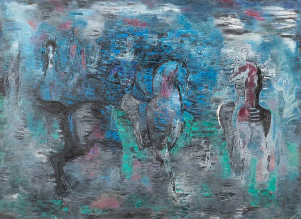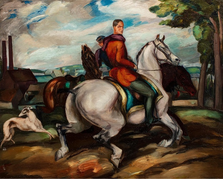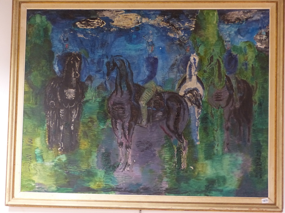 Lot 1675. EUGENIUSZ GEPPERT (1890-1979) ARR. POLISH LANCERS, SIGNED, OIL ON CANVAS. 96 x 122cms. JS Fine Art Auctioneers & Valuers. 01/27-29/21. Sold 500 GBP