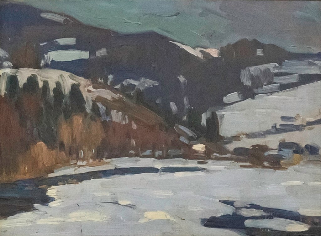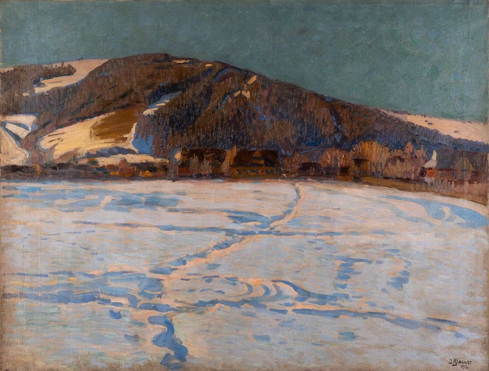 Kilka prac tego żydowskiego artysty znalazło sie w ostatnich 30 latach na polskich aukcjach. Spośród nich, ta z Niemiec należy moim zdaniem do lepszych. Pejzaż swoimi niebieskim tonami śniegu przypomina nieco manierę krajobrazów Falata. Malarz zamordowany został w getcie lwowskim lub zmarł tam z głodu, na jedno wychodzi: żyłby i tworzyłby gdyby nie Niemcy. Więcej o artyście: https://sztetl.org.pl/pl/biogramy/4384-glasner-jakub