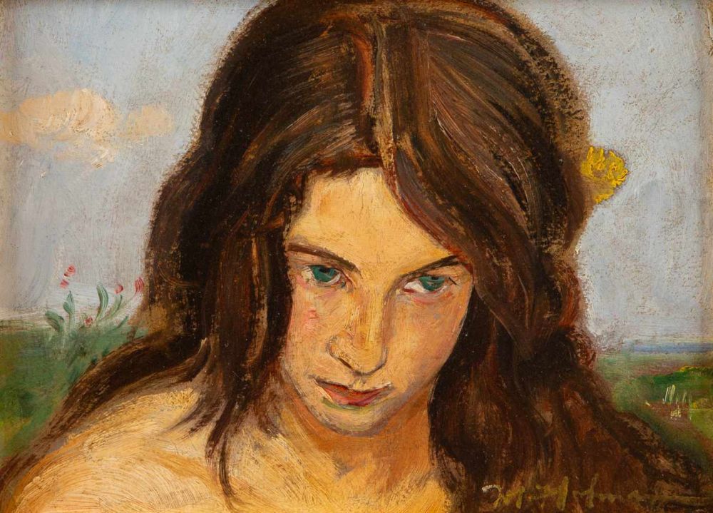 Lot 149. Vlastimil Hofmann, Czech/Polish (1881-1970) Oil on cardboard “Portrait Of A Girl”. Signed lower left. Measures 9-3/4″ x 12-3/4″, frame measures 15-3/4″ x 18-3/4″. Condition: Good condition. Estimate: $2000.00 – $4000.00. Starting $1,000. Estimate $2,000-4,000. Kodner. 03/06/19