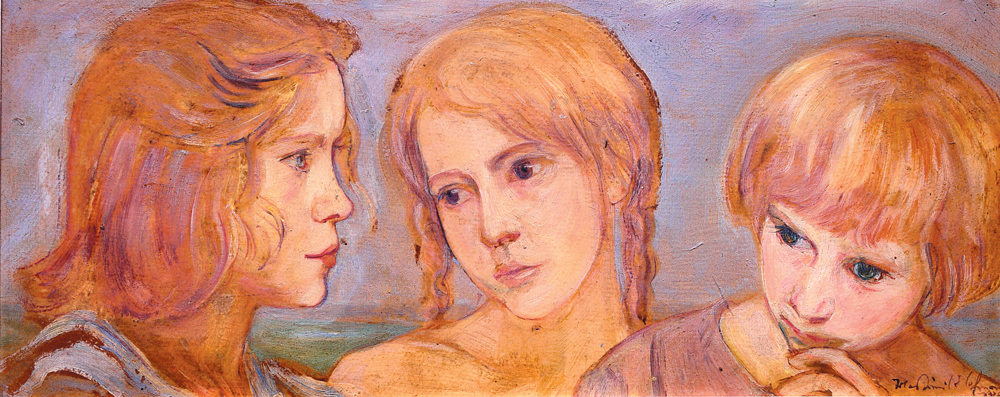 Lot 465. Vlastimil Hofman. Three Girls. Oil on cardboard, 15×38 cm.Signed. Estimate $1,000-1,500. Tiroche. 01/29/19