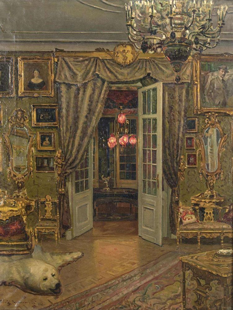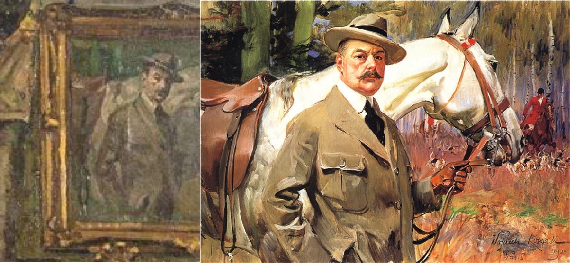 Na ścianie, po prawej stronie u góry, wydaje mi się, że wisi autoportret Wojciecha Kossaka (1924 r), obecnie w MN w Warszawie. Historia tego obrazu powiedzie nas do nazwy dworku w jakim Błażej Iwanowski namalował tę pracę w 1929 roku.