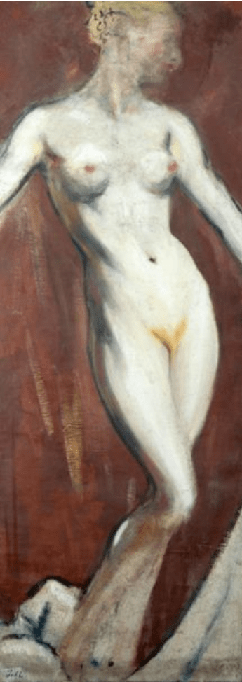 Lot 155. Wladyslaw JAHL (1886-1953). Nu. Huile sur toile marouflée sur carton, signée en bas à gauche, très petits manques de peinture, 119 x 44,5 cm. Estimate 800 – 1,000 euro. Boisgirard. 07/17/20