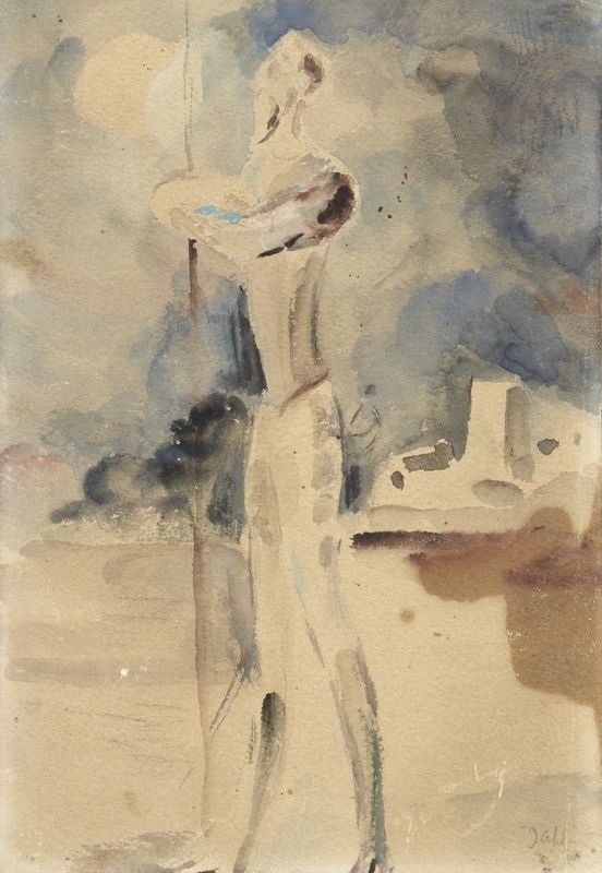 Lot 216. Wladyslaw Alojsy JAHL (Jaroslaw 1886 – Paris 1953). Don Quichotte. Aquarelle sur papier. 20,5 x 14 cm. Signé en bas à droite Jahl. Estimation : 150 € / 200 €.
