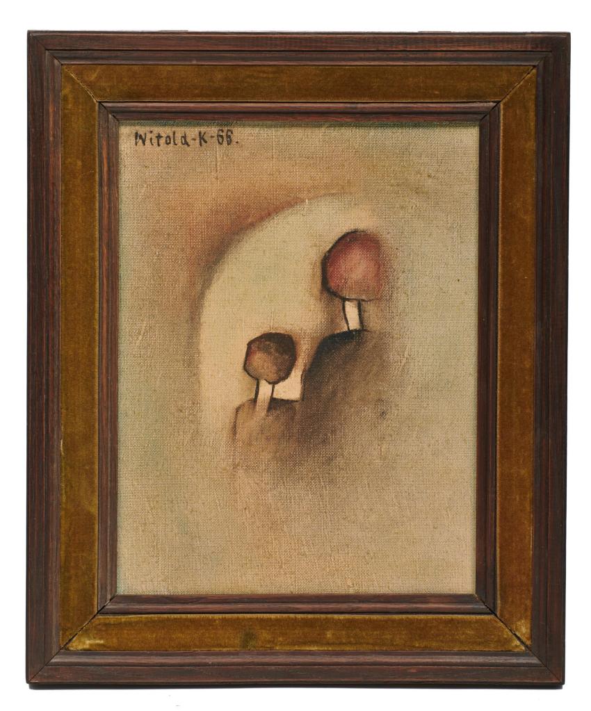 Lot 100. WITOLD KACZANOWSKI Polish, b. 1932. Untitled, 1966, oil on canvas, signed and dated Witold-K-66 upper left, 14 x 10 3/4 in., frame: 18 1/2 x 15 1/4 in. Estimate: $1,000 – $2,000. Grogan and Company. 05/06/23