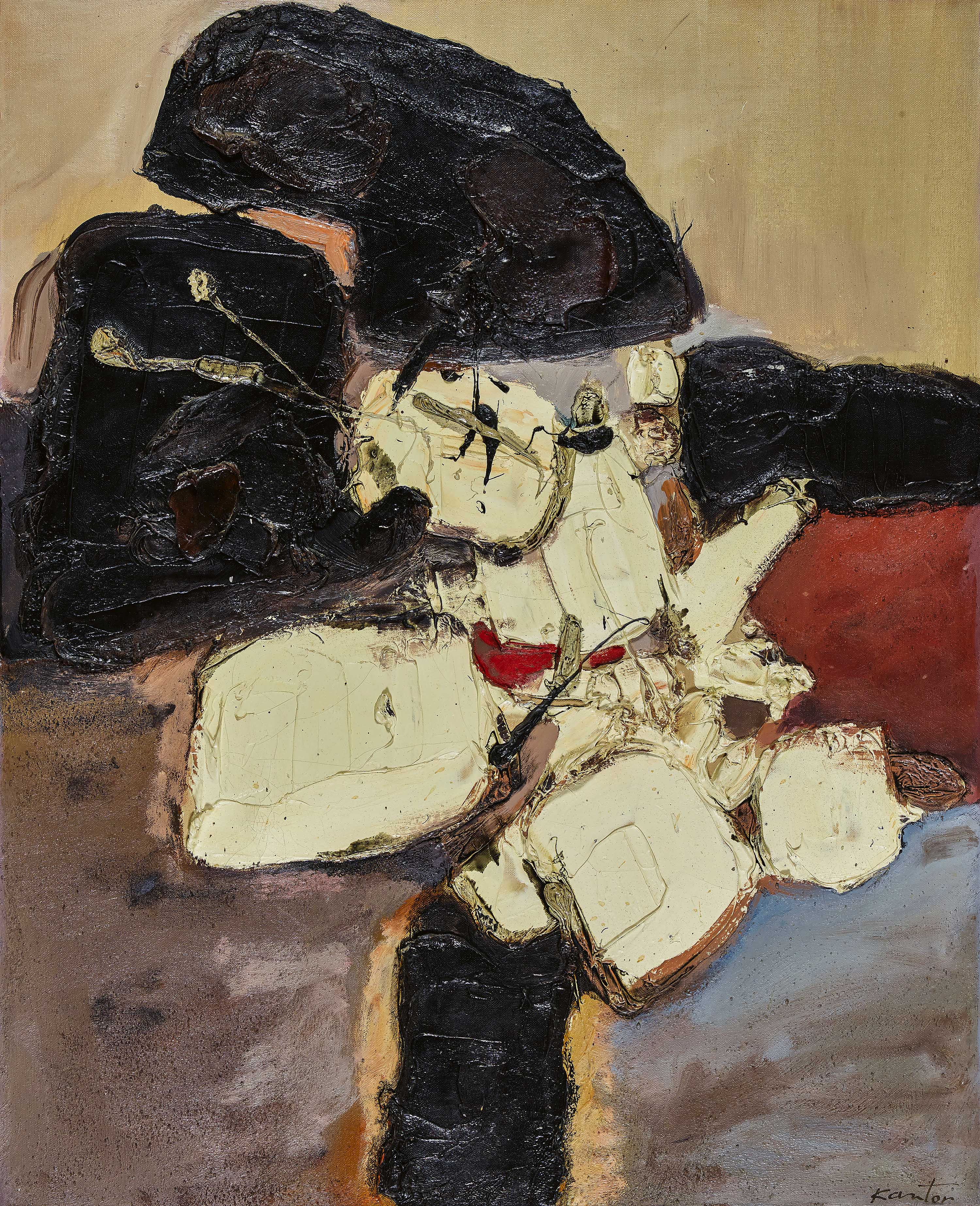 Das vorliegende Gemälde weist bereits mit seinem Titel darauf hin, dass es sich um ein Werk an der Schnittstelle zwischen Objekt und bildlicher Schöpfung handelt. Durch die pastose Verwendung der Ölfarbe erzielt Tadeusz Kantor eine plastische Textur von haptischer Wirkung, wodurch sein Bestreben, verschiedene künstlerische Disziplinen miteinander zu verquicken, nachvollziehbar wird.