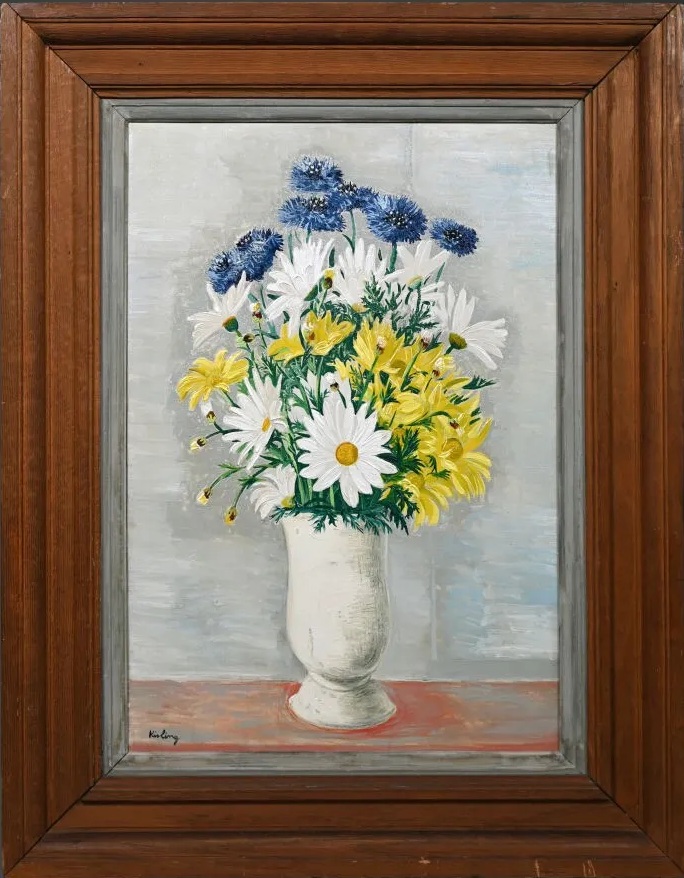 Obecnie panuje pewnien zastój na rynku poloników i może dlatego należy docenić prace ‘mniejsze’ wielkich artystów. Jedną z nich jest drzeworyt Mojżesza KIslinga wykonany w 1916 roku, noszący tytuł Water Carrier. Nadkład tego drzeworytu jest stosunkowo niski bo jest to jedynie 50 egzemplarzy z których, sądzę, być może jedynie kilka przetrwało do naszych czasów. Na pierwszy rzut oka, na niekorzyść tego drzeworytu może przemawiać chyba dość wysoko ustawiona cena wyjściowa (€650) oraz kiepski stan kartki papieru. Jednak, należy wziąć pod uwagę, że najróżniejsze pośmiertne litografie tego artysty, drukowane przez syna, dominują na rynku a tu mamy wczesny drzeworyt odręcznie wykonany przez Mojżesza Kislinga i w dodatku sygnowany przez niego. Papier na którym został odbity klocek jest wypłowiały od światła lecz konserwator papieru będzie w stanie przywrócić jego stan, zbliżając do oryigału sprzed ponad 100 lat – nie jest to droga konserwacja. W sumie, należy traktować ten drzeworyt z szacunkiem a w dodatku jako okazję posiadania pracy wykonanej ręką Kislinga. Nie każdego bowiem stać na drogi olej tego artysty.
