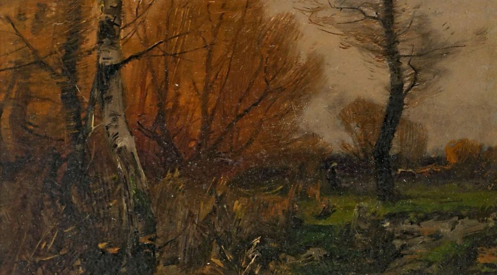 Lot 619. KOCHANOWSKI, ROMAN 1857 Krakau – 1945 Freising. Landschaft mit Holzsammlerinnen. Öl auf Papier. L. u. signiert. Auf Karton aufgezogen. Min. beschädigt. Blatt: 20,5 x 13,5 cm, Karton: 22 x 14,5 cm. Rahmen. Starting €800. Estimate €900. Scheublein Art & Auktionen. 09/25/25. Sold €1,700