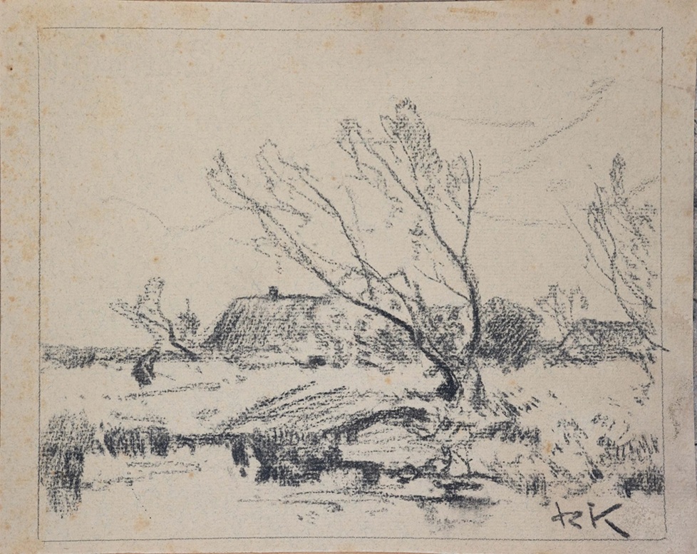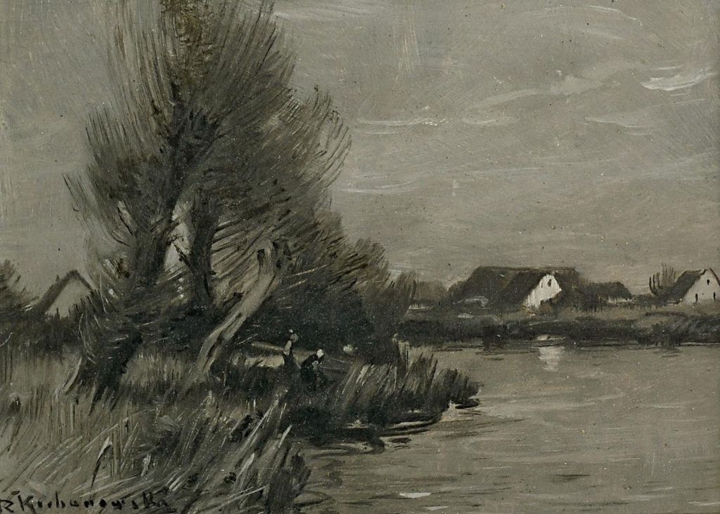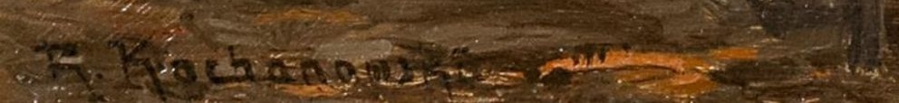 Spory wybór prac Romana Kochanowskiego w Monachium. Wyróżnia się en grisaille pejzaż nadwodny z domkami. Każdy z tych małych olejów może zapoczątkować kolekcję RK lub ją uzupełnić.