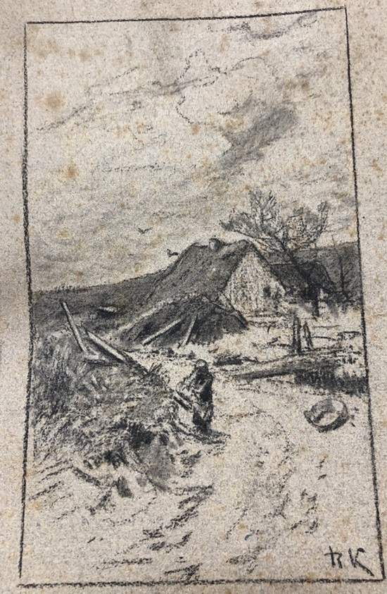 Analiza geograficzna chaty na omawianej pracy jest wielce naciąganym argumentem („chałupie, która jest ani bawarska ani też polska i odbiega od chałup (domów chlopskich) u tego malarza”) – na omawianej pracy widać jedynie fragment szczytu chałupy, dosłownie malutki fragment. To co wyraźnie widoczne to pleciony, wiklinowy płot i furtka do ogrodu – gdyby analizował Pan obraz na żywo a nie małe zdjęcie z internetu mógłby Pan dostrzec ten jakże istotny fakt. Plecione płoty w twórczości RK występują natomiast bardzo często.