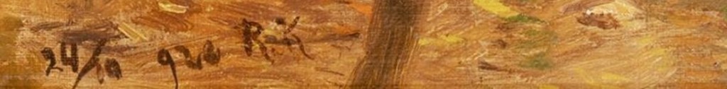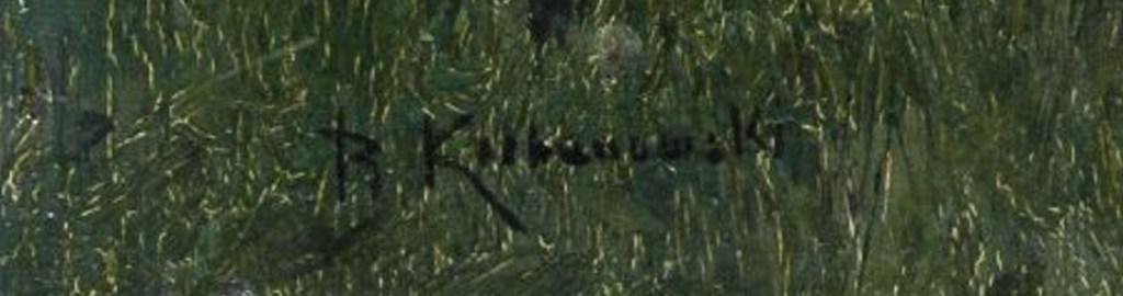 Ad 3. Sygnatura jest spójna i podobna na pracach RK z dość późnego okresu twórczości, lat 20-tych i 30-tych XX wieku. Nie widzę problemu by tak napisać. Obraz natomiast został namalowany (postać dziecka) dość dokładnie, mogący świadczyć o dużo wcześniejszych latach. Sygnaturę RK można nieźle prześledzić od bardzo wyszukanej w latch 80-tych XIX wieku do wyglądających niedbale kładzionych w późnym okresie twórczości. Podsumowując, ta późna sygnatura jest OK ale nie pasuje do tej pracy. Sygnatura to rzecz wtórna na którą patrzę dopiero po obejrzeniu pracy.