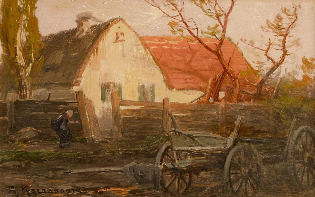 Roman Kochanowski. Wagen vor Bauernhof