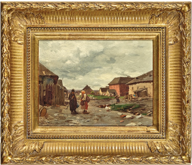 Lot 123. Romana Kochanowskie (Krakow 1857-1945 Freising). A village idyll, signed R. Kochanowski, oil on board, 18 x 23.5 cm, framed, (Rei). Estimate €2,000 – 2,800. Dorotheum. 12/04/25. Sold €3,600
