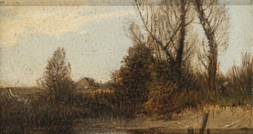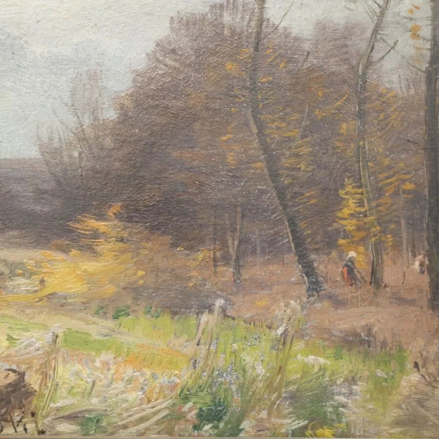 Lot 41. Roman KOCHANOWSKI ( 1856 – 1945) – paysage d’automne animé, Huile sur panneau, Signé en bas à gauche, 11,5 x12,5 cm. Sold 2,000 euro