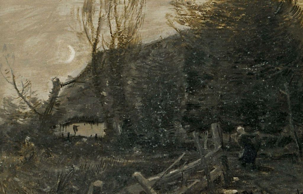Lot 623. KOCHANOWSKI, ROMAN 1857 Krakau – 1945 Freising. Gehöft bei Nacht. Öl auf Holz. R. u. signiert. Restauriert. 17 x 24,5 cm Rahmen. Opening 1,200 euro. Scheublein Art & Auktionen. 09/19/24. Sold 2,600 euro