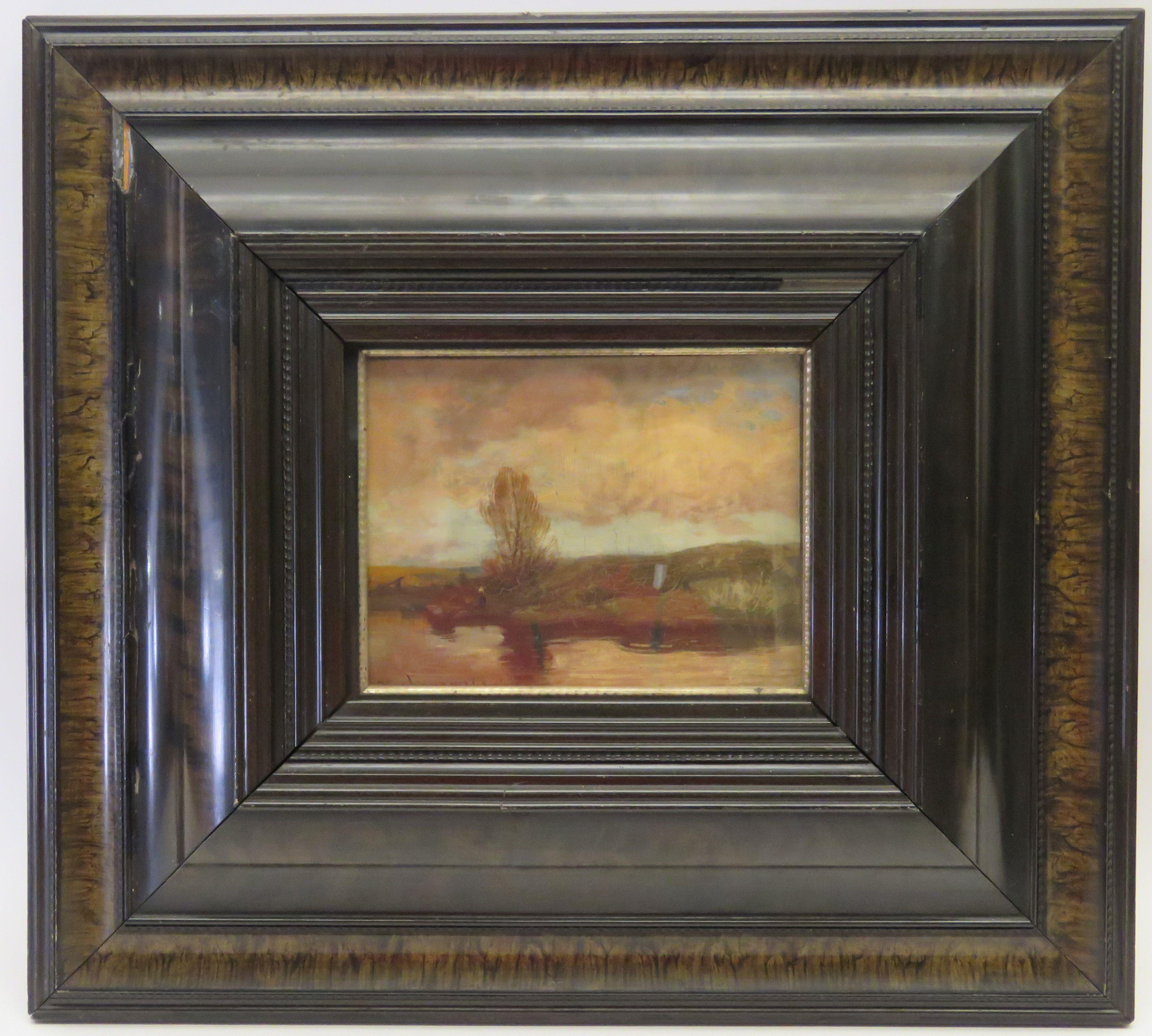 Lot 3023. Kochanowski, Roman (Krakau 1856-1945 Freising). Herbstliche Landschaft. Öl auf Holz. Sign., nicht bezeichnet und dat. (wohl um 1900/10). 22,7 x 30,5 cm. – Späterer Holzrahmen. (56) FLußlandschaft mit arbeitenden Bauern im Vordergrund. – Kochanowski “ließ sich in München nieder, von wo aus er von Zeit zu Zeit die Heimat besuchte. Stellt seit 1877 aus u. gehört zu den besten poln(ischen) Landschaftsmalern seiner Zeit. Malt vorwiegend Motive aus der Gegend von Krakau u. dem Weichselgebiet” (Thieme/Becker XXI, 98). Estimate 800 euro. Zisska & Lacher – Buch- und Kunstauktionshaus. 11/09/18.