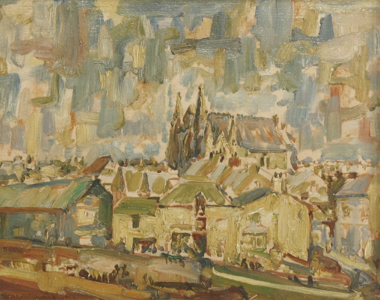 Lot 437. *Marian Kratochwil (Polish, 1906-1997). CORNISH FISHING VILLAGE, PORTHLEVEN. Signed and dated 1962 l.l., oil on board; 29 x 36cm.