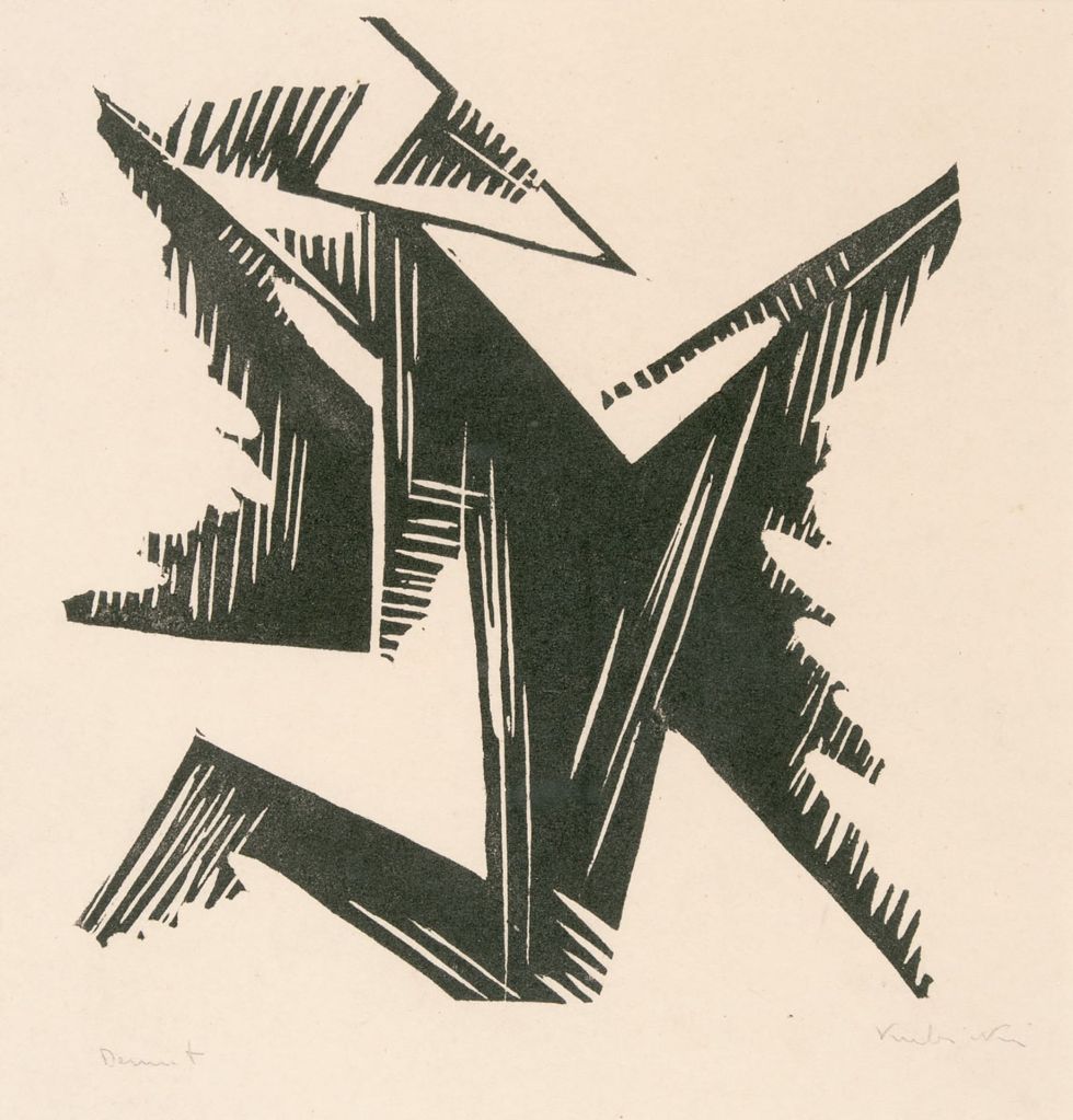 Lot 231. Kubicki, Stanislaw (Ziegenhain 1889 – 1942 Warschau). Demut. Holzschnitt auf feinem Papier. 1922. 16 x 14,8 (29,8 x 23) cm, unter Passepartout. Unter Glas gerahmt. Signiert u. betitelt. Provenienz: Aus dem Nachlass von Margarete Kubicka und Stanislaw Kubicki. – Ausgestellt in: Versuch einer Rekonstruktion: Internationale Ausstellung Revolutionärer Künstler 1922 in Berlin. Neuer Berliner Kunstverein, 1975, Katalog-Nr. 24; sowie in: My, berlinczycy! Wir Berliner! Geschichte einer deutsch-polnischen Nachbarschaft. Berlin, Stadtmuseum Ephraim Palais, 2009, Katalog-Nr. 134 (die Rahmenrückwand mit Transportetikett) sowie abgebildet in: Bunt. Expressionismus. Grenzübergreifende Avantgarde. Posen, Nationalmuseum, 2015, S. 151. – Die oberen Ecken mit Läsuren. Vereinzelte Knitterspuren.