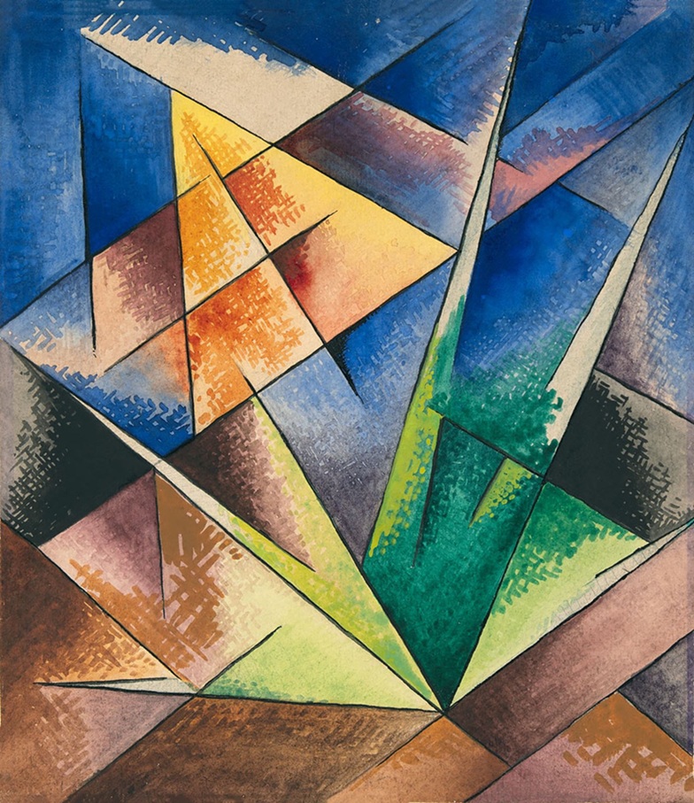 Provenienz: Aus dem Nachlass von Margarete Kubicka und Stanislaw Kubicki. – Ausgestellt in: Stanislaw Kubicki. Berlin, Sonderausstellung der Galerie der Juryfreien, Juli 1931. – Abgebildet in: Lidia Gluchowska, Avantgarde und Liebe. Margarete Kubicka und Stanislaw Kubicki 1910-1945, Berlin 2007, S. 190 sowie in: Lidia Gluchowska, Ein Sack Zucker. Interview mit Prof. S. Karol Kubicki, in: Pro Libris, Nr. 3 (28), Zielona Góra 2009, S. 70-81. – Antworten auf die Frage nach dem Schicksal und der Neugeburt der Welt suchte Stanislaw Kubicki zumeist in der Naturphilosophie. Neben seinen Anfang der zwanziger Jahre geschaffenen Gedichtreihen, stellte er in seinen Bildern eine Art Analyse der Naturprozesse dar. In diesen dominieren bis ca. 1927 Darstellungen von Blumen und Naturelementen und ab 1927 solche des Tierreiches. 36 dieser Werke zeigte Kubicki 1931 in einer Einzelausstellung der Juryfreien, darunter das vorliegende Hauptwerk “Erschaffung der Pflanzen”, das auf einer Fotografie des Ausstellungsraums ganz prominent zu sehen ist. – In einer detaillierten Rezension der Weltkunst besprach Eckardt von Sydow die Ausstellung: “Figuren, Tierbilder, Pflanzen, Stadtbilder sind in ornamental zerlegender und zugleich aufbauender Weise konstruiert. Ein tiefes lyrisch-mystisches Gefühl für Tier und Pflanze füllt das ornamenthafte Gefüge mit symbolkräftigem Gehalt.” – Kubickis Gemälde folgt einem strengen, von Diagonalen durchzogenen Bildaufbau, bei dem die Liniengebilde sowie die in stakkatohaften Pinselstrichen komponierten Farbflächen in Bewegung geraten und dadurch den Naturprozess der “Erschaffung der Pflanzen” in Gang zu setzen scheinen. – “Feste, ruhige, stetige Handbewegungen und ein genau beobachtendes Auge, dessen Beobachtungsfähigkeit aus dem denkenden Erfassen der Struktur des Objektes kamen, waren bei allen Arbeiten des St. Kubickis die Grundlage. Der tiefste Anlaß jedoch, aus dem dann später diese Zeichnungen und Bilder entstanden, war eine Liebe zur Schöpfung, die diese ihm in gewisser Weise zurückgab, wenn sie nach oft wochenlangen, zum mindesten stundenlangen, geduldigen Beobachtungen ihm etwas von sich offenbarte – eine Erkenntnis von der Art des Wachstums einer Pflanze in verschiedenen Umgebungen .” (Aus: Margarete Kubicka, Beziehungen zu den Objekten, Manuskript. – Alle Zitate nach Lidia Gluchowska, 2007, S. 190 und S. 240 ff.) – Fachmännisch restauriert. Retuschen.
