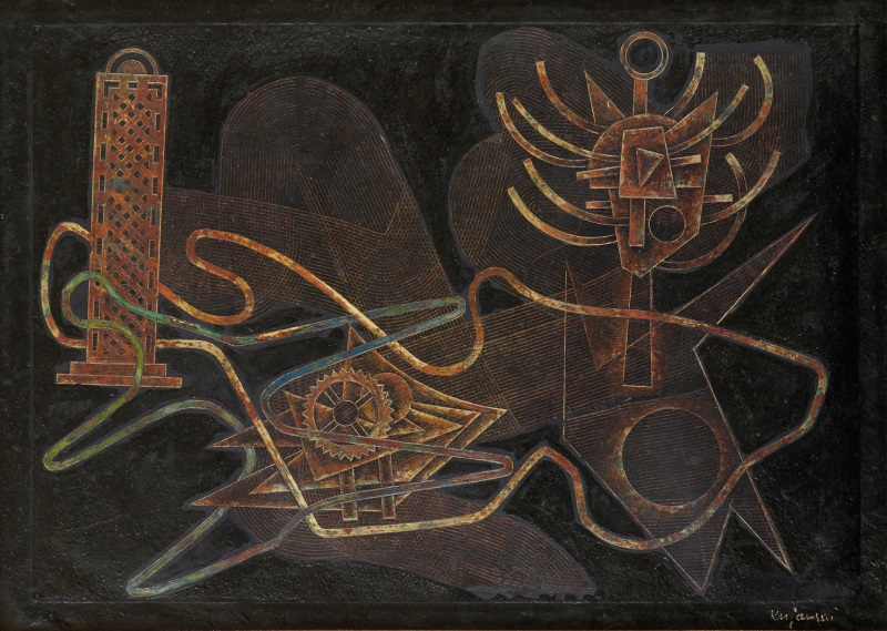 Lot 183. Jerzy KUJAWSKI (1921-1998), “Composition“, huile sur toile, signée en bas à droite et datée 1946, 51 x 66 cm. Notice : Jerzy KUJAWSKI est un artiste surréaliste ayant participé à la fameuse exposition internationale du surréalisme à la Galerie Maeght de 1947. Estimate 2 000 € – 3 000 €. Maître Guillaume CHEROYAN. 02/10/24. Sold 6,100 euro.