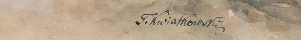 Niewiele zostało do kończa roku i w tych ostatnich dniach mamy trzy prace Teofila Kwiatkowskiego na rynku francuskim. Jedna z nich (górna) była niedwano na aukcji i została tam sprzedana za 1,000 euro (https://polishartcorner.com/category/kwiatkowski-teofil/). Nie najlepsza to akwarela, choć wysoko cenię sobie prace tego malarza. Druga z nich przedstawia pejzaż z okolic Avignonu i być może jest bardziej atrakcyjna. Niezaprzeczanym przebojem był dla mnie biedejmarowski portret francuskiej rodziny w wykonaniu tego malarza. Był nieco ‘sztywny’ lecz nie widziałem podobnego namalowanego przez Teofila Kwiatkowskiego, w dodatku olejem.